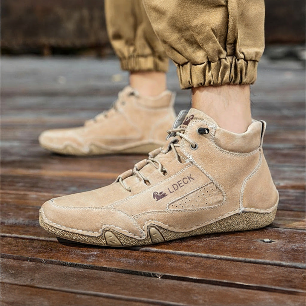 Premium micro-perforated leather allows natural airflow to keep feet fresher and more comfortable throughout the day. The breathable construction promotes natural moisture management while waterproof technology keeps feet dry in any season.