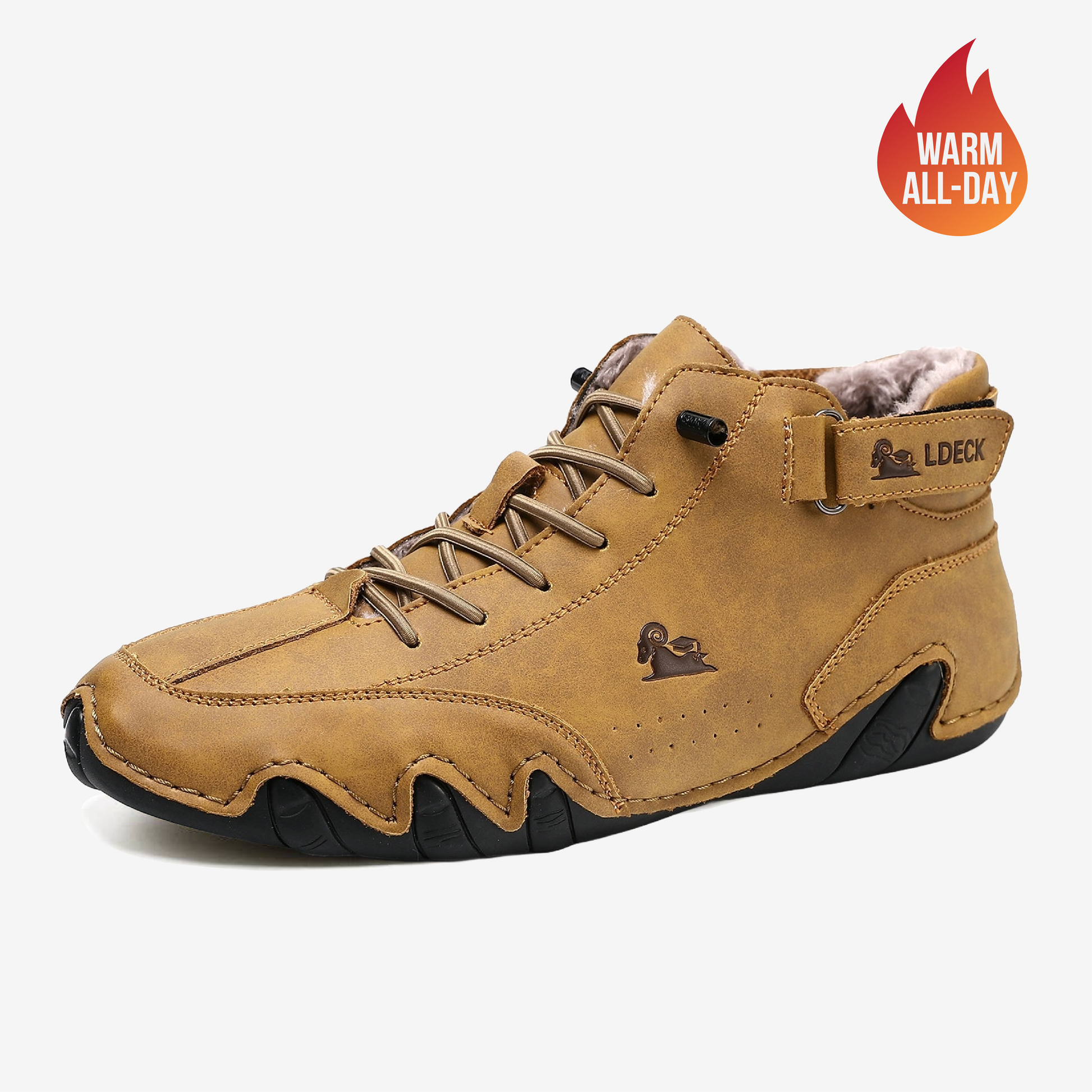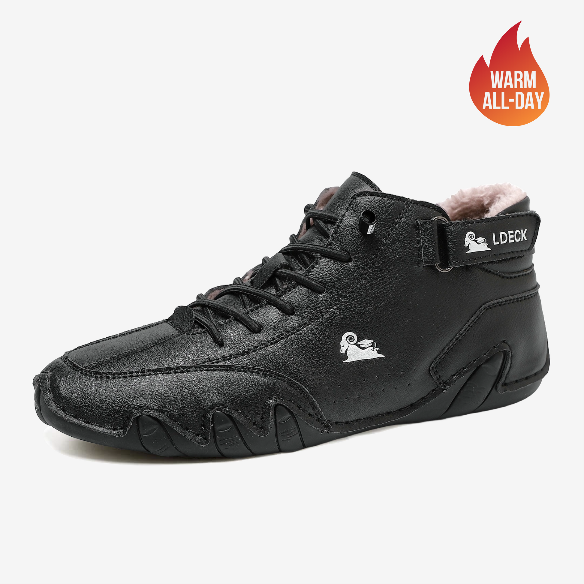 Premium waterproof leather provides exceptional protection while maintaining natural breathability for all-day comfort. The faux-fur lining delivers cozy warmth in cold weather while wicking away moisture, keeping feet dry and comfortable throughout winter conditions.