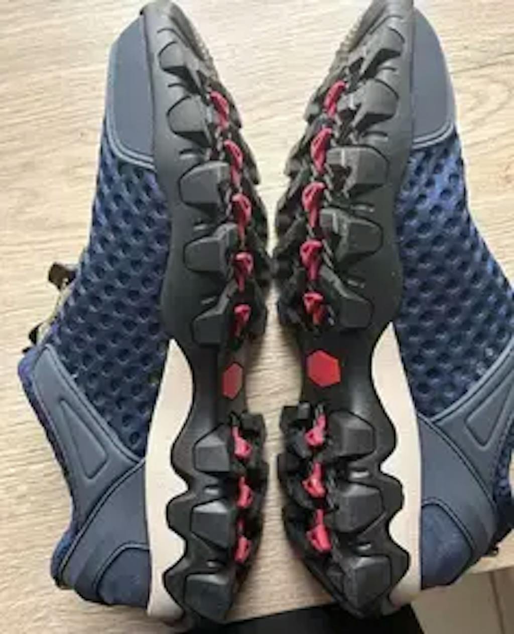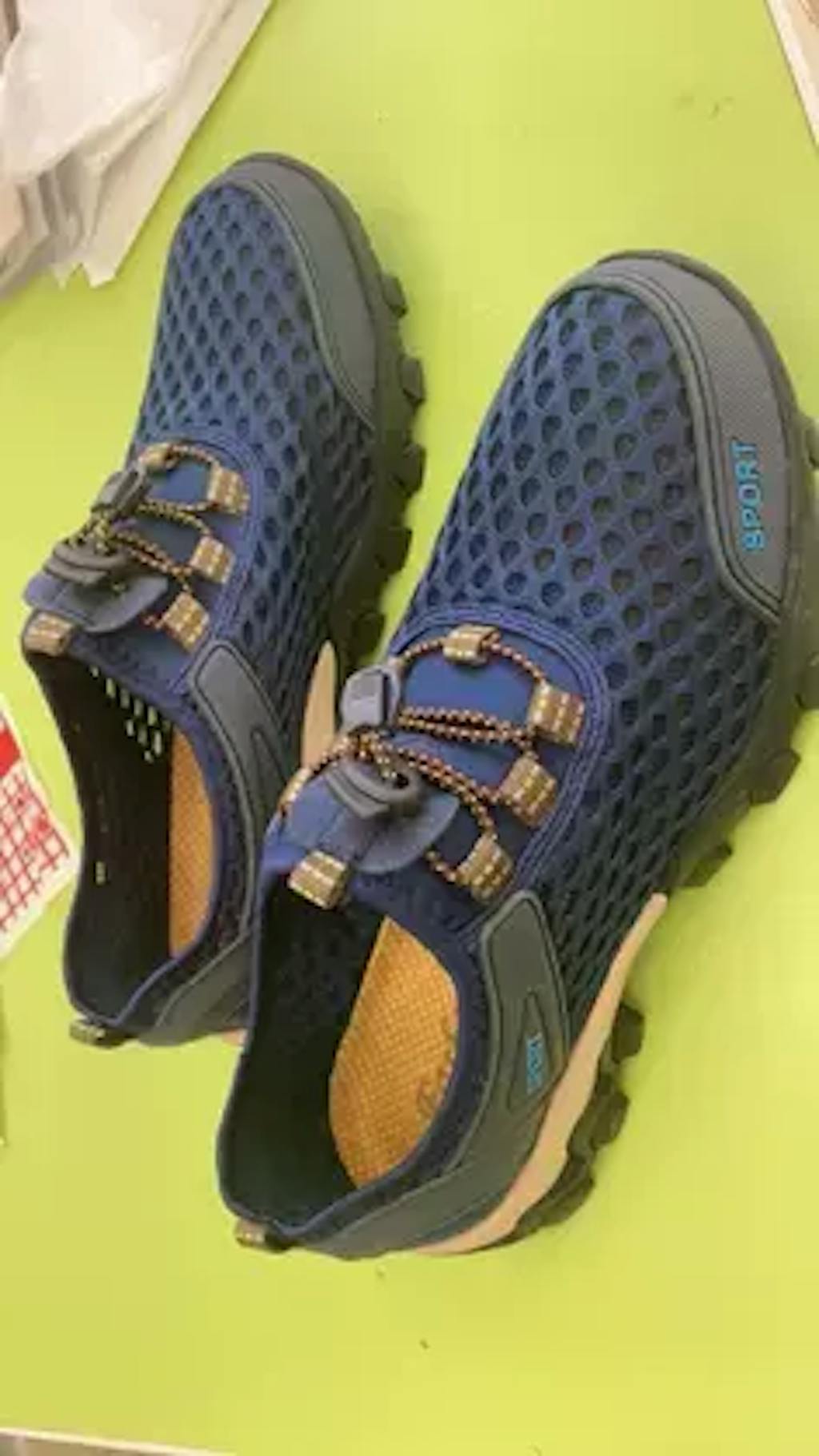 - Start by threading the laces through the bottom eyelets from the outside in.
